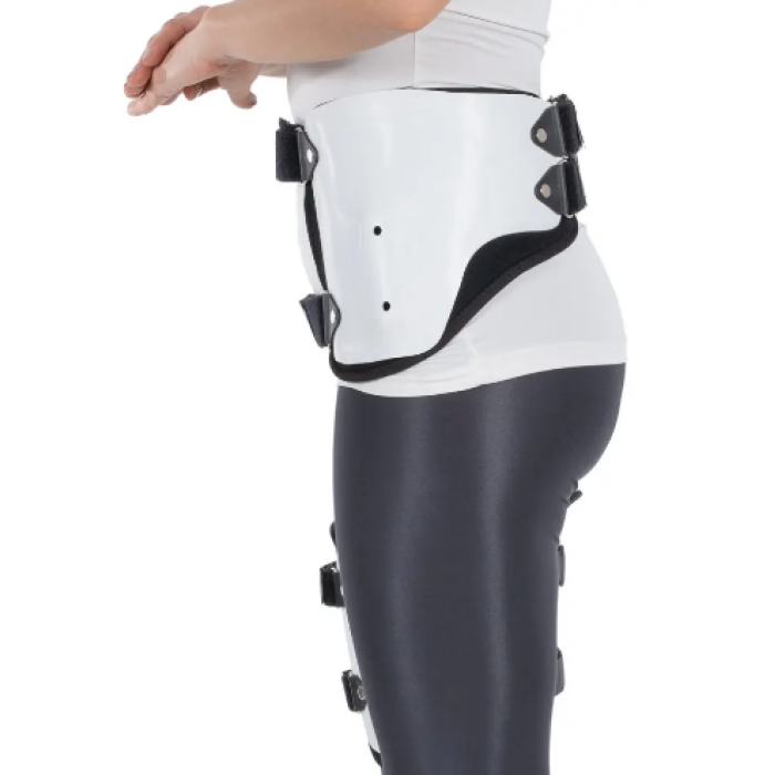 A csípő ortézis tartós termoplasztikus műanyagból készül. A bőrrel érintkező részeket frottírszövet borítja, a hosszú távú használat kényelme érdekében pedig poliuretán réteg található rajta. A hajlítás 15 fokonként állítható, 15 foktól 120 fokig. Lehetőség van az ortézis hosszának beállítására is.