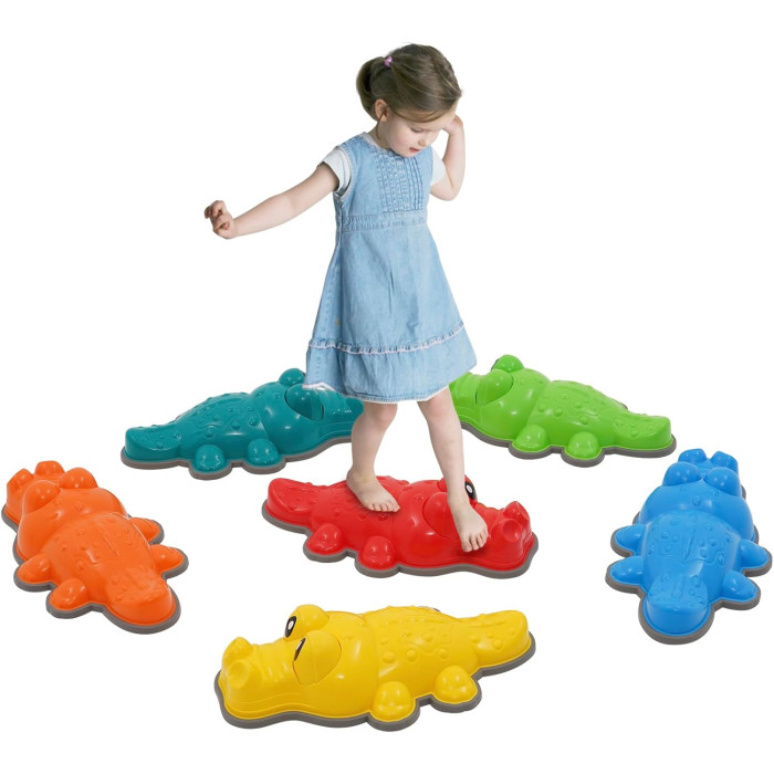 A Krokodil játékkészlet a gyermekek koordinációjának, motoros készségeinek és egyensúlyának fejlesztésére szolgál.